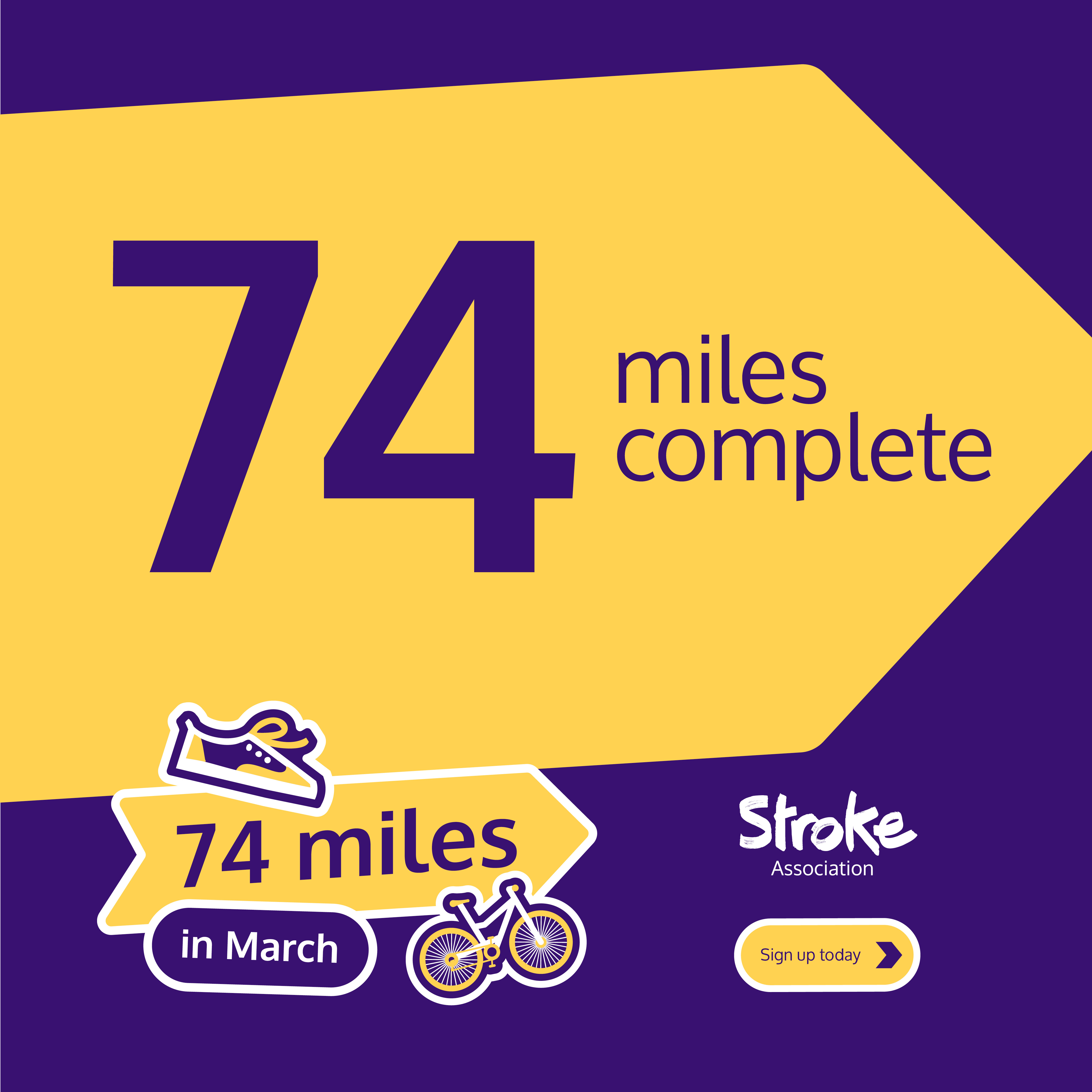 Registration for our 74 miles in March challenge opens from 1 February. The actual challenge runs from 1 March to 31 March.