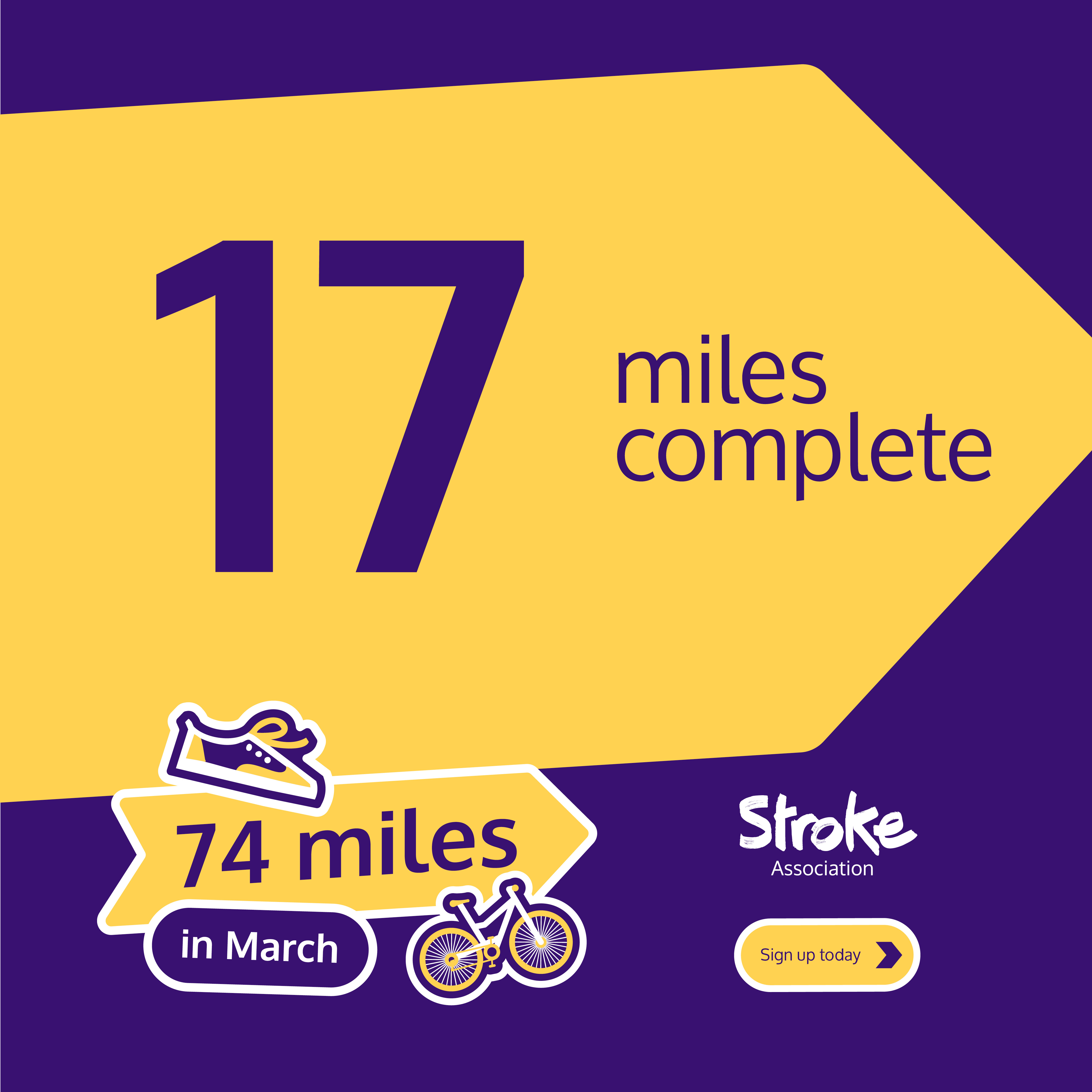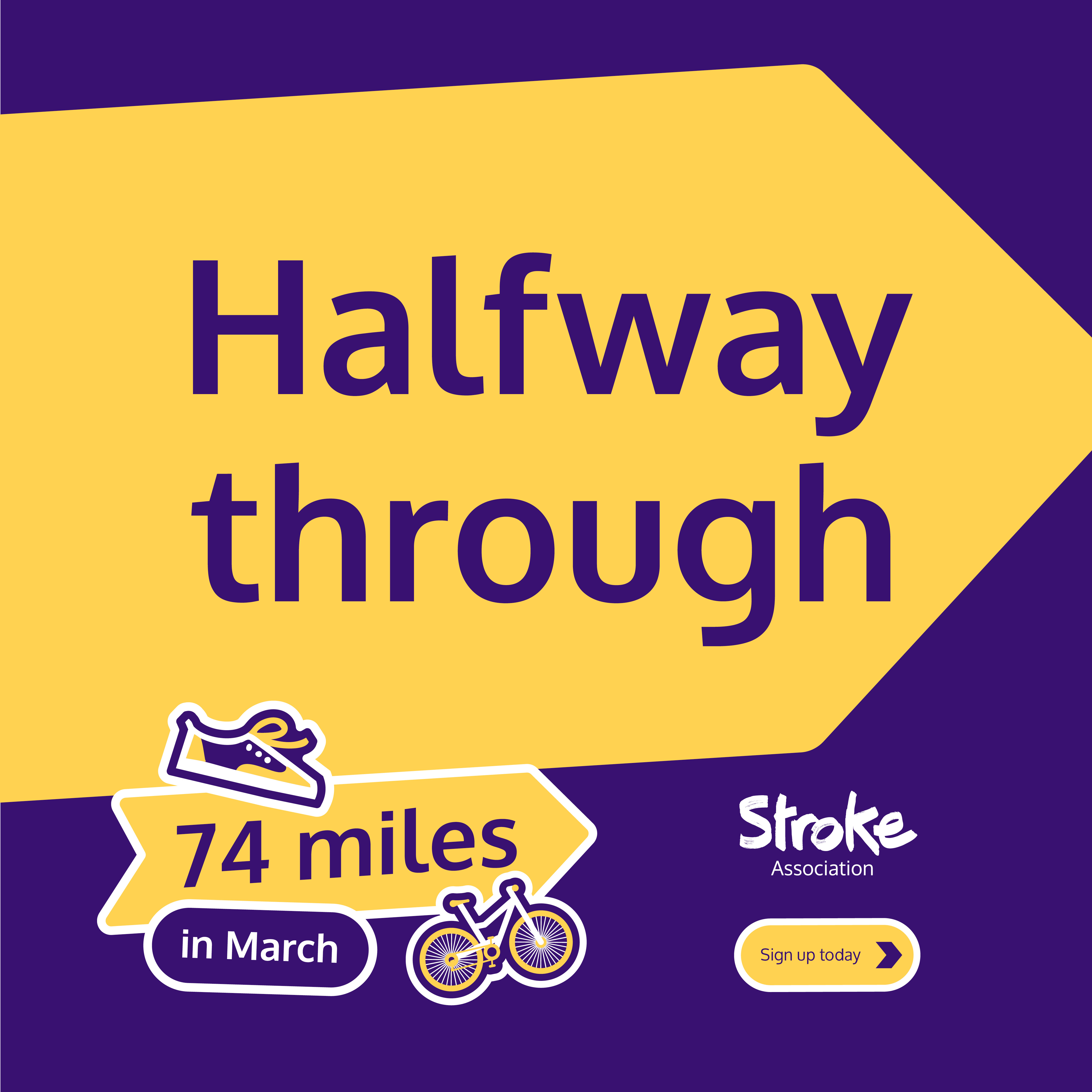 To register, complete our sign up form here.  You will be sent a Stroke Association t-shirt and tracker following sign up.  Then if you're on Facebook, join our friendly 74 miles in March challenge group to keep you motivated and supported.